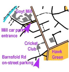 Parking at the cricket club is very limited, and on-street parking close by is difficult – unless you are really early, please park on-street along Barnsfold Road (SK6 7JF), using the alley to get to the club, or in the Goyt Mill car park off Sunwell Terrace (SK6 7JB) which is 200m North of the club, – see map: